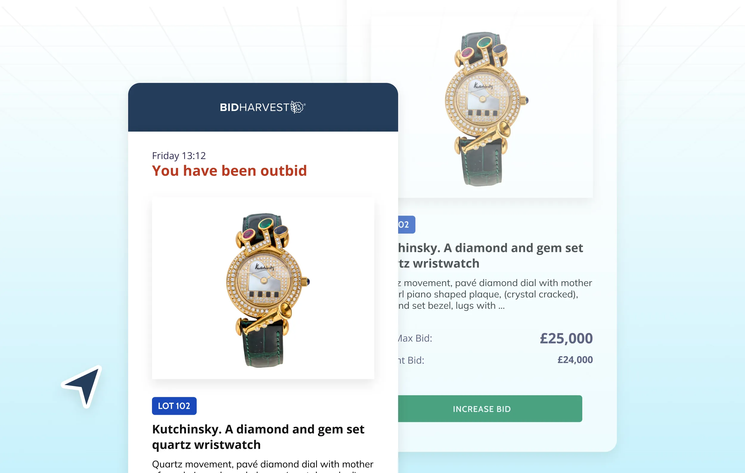 Automate all critical buyer and seller communications with transactional and triggered emails. From registration confirmations to bid notifications, winning alerts, invoices, and collection reminders, BidHarvest keeps your audience informed without manual input. Emails are fully branded, event-aware, and support dynamic content such as lot links and bidder details. Helps reduce support tickets, improves professionalism, and ensures timely bidder engagement.